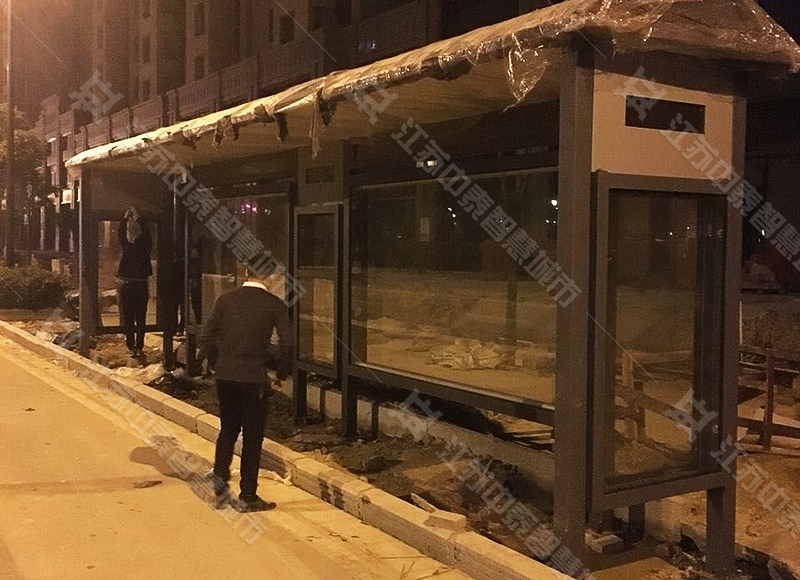 近日,一批江蘇徐州公交候車亭在工人的徹夜加班中完成了所有的安裝工作。此公交候車亭由宿遷市興科廣告設備有限公司負責設計、生產與安裝,簡約大氣,時尚精致,美觀舒適.展現出了精致和諧的城市風貌。