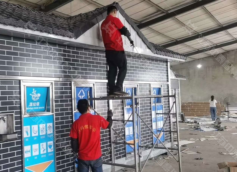客戶在我廠定制的6米垃圾分類屋已初步制作完成,進入最后安裝驗收階段。