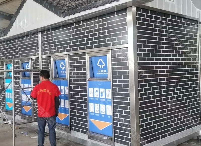 垃圾分類屋是垃圾分類工作中投放的,為垃圾回收而提供遮陽避雨的設施。垃圾分類屋簡單投放且低成本,還有更清潔、美觀的優(yōu)勢,帶有不同顏色的垃圾桶分類投放指示欄,簡單又方便。