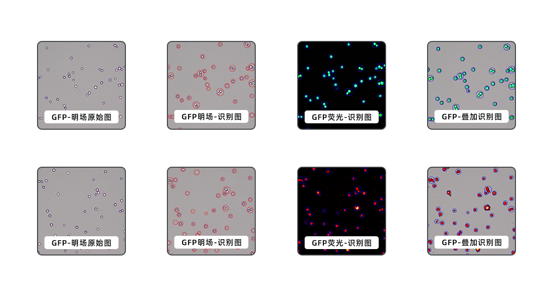 博大博聚熒光細(xì)胞計(jì)數(shù)、分析儀均配置了“轉(zhuǎn)染實(shí)驗(yàn)”模式,設(shè)計(jì)用于處理熒光標(biāo)記的細(xì)胞,如“綠色熒光蛋白GFP”和“紅色熒光蛋白R(shí)FP”(其他熒光蛋白類型的分析模式可按需定制)。儀器配備智能分析功能,可以自動(dòng)計(jì)數(shù)和分析熒光標(biāo)記的細(xì)胞,減少人為誤差。