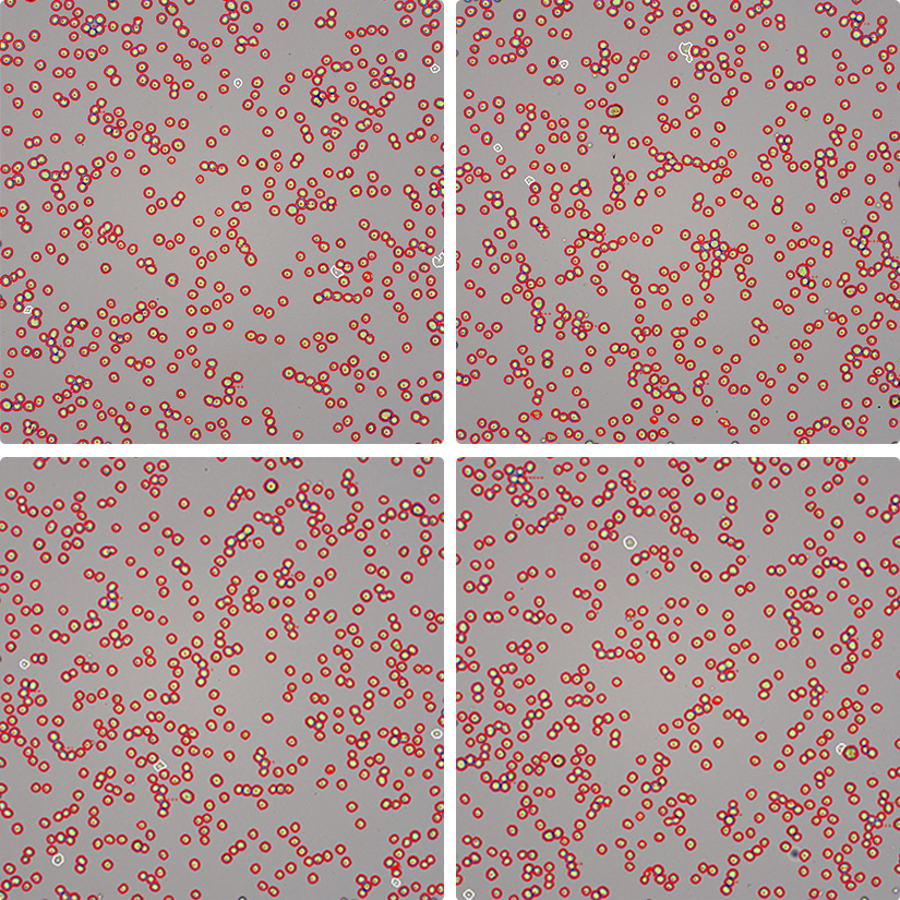 (儀器拍攝的四個(gè)靶面細(xì)胞識(shí)別圖)