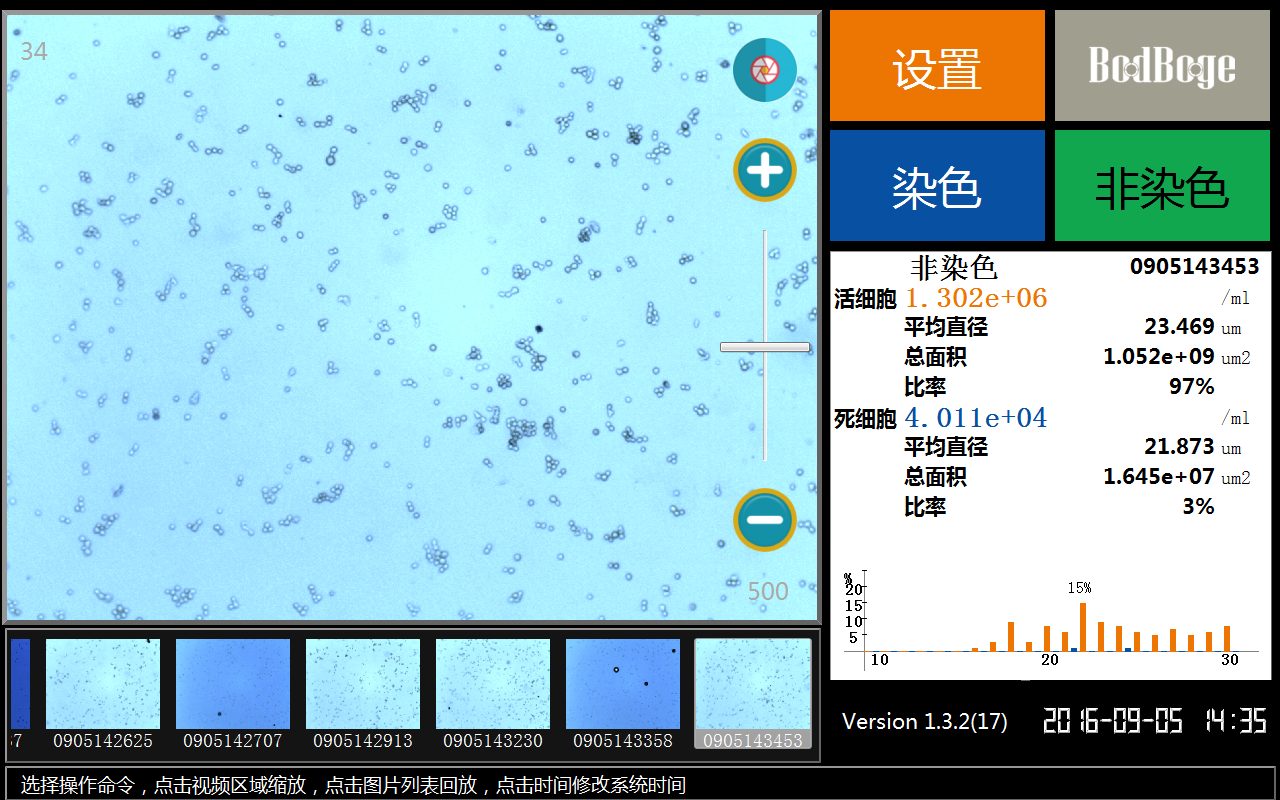 人工計數(shù)與細(xì)胞計數(shù)儀計數(shù)的原理其實都是一致的:細(xì)胞計數(shù)是為了讓培養(yǎng)的細(xì)胞具有一定的密度以便其能夠良好生長,一般以每毫升細(xì)胞數(shù)(細(xì)胞/ml)來表示計數(shù)結(jié)果。而且對于免疫細(xì)胞治療這塊來說,需要對細(xì)胞濃度進行計算才能夠用于治療這塊。這就需要測量死、活細(xì)胞的濃度。而在細(xì)胞中,不可避免的會出現(xiàn)因各種可能因素而導(dǎo)致死亡的細(xì)胞,總細(xì)胞數(shù)中活細(xì)胞所占的百分比稱為細(xì)胞活力,也可叫做存活率。對細(xì)胞活力的應(yīng)用可用于對復(fù)蘇后細(xì)胞凍存和復(fù)蘇效果的檢測,也可用于在組織中對細(xì)胞進行分離時是否存在損傷?,F(xiàn)在常用的對細(xì)胞死活的辨別方法是通過使用臺盼藍(lán),臺盼藍(lán)染色的原理是活細(xì)胞不會被染色,而死細(xì)胞能夠染色?,F(xiàn)在深圳博大博聚科技有限公司研發(fā)的細(xì)胞計數(shù)儀通過特有專利技術(shù)非染色圖像分析系統(tǒng),不用臺盼藍(lán)染色也能夠直接識別死、活細(xì)胞,而且這種非染色的模式特別適合用于對活體細(xì)胞的觀察,能夠避免臺盼藍(lán)染色后對細(xì)胞的傷害。