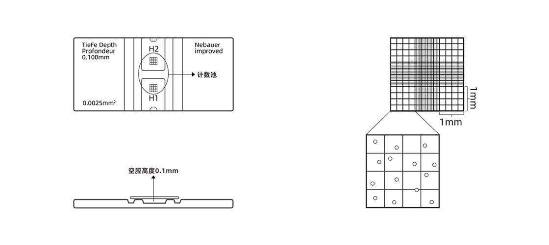 ③一次性細(xì)胞計數(shù)片的空腔高度設(shè)計嚴(yán)格標(biāo)定為0.1mm,計數(shù)體積(0.1mm3)與血細(xì)胞計數(shù)板一致。