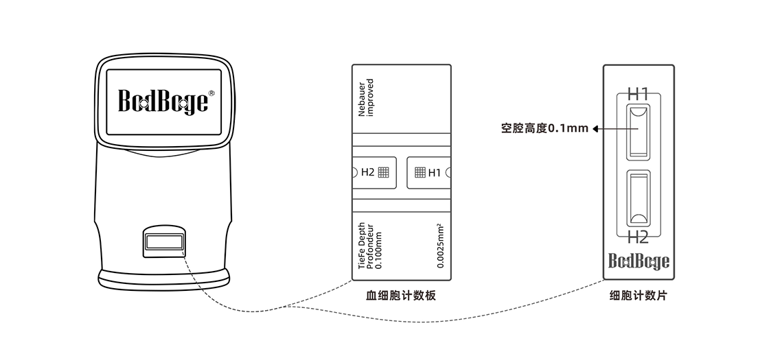 博大博聚細(xì)胞計數(shù)儀,沿用經(jīng)典血細(xì)胞計數(shù)板的計數(shù)原理進(jìn)行研制(JJG 552-1988 血細(xì)胞計數(shù)板試行檢定規(guī)程),并可搭載一次性細(xì)胞計數(shù)片,其細(xì)胞計數(shù)片與標(biāo)準(zhǔn)血細(xì)胞計數(shù)板的計數(shù)池高度相同。